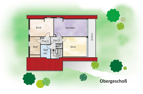 Haus- und Wohnungsgrundrisse - Kolorierungen,